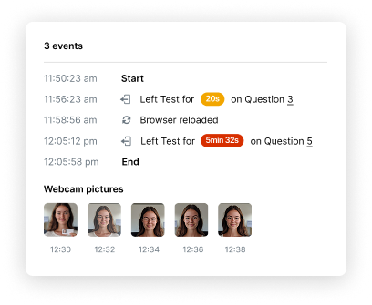 Ensure assessment integrity with ClassMarker’s proctoring tools. Deter online test cheating and ensure secure, reliable results. No installation required!