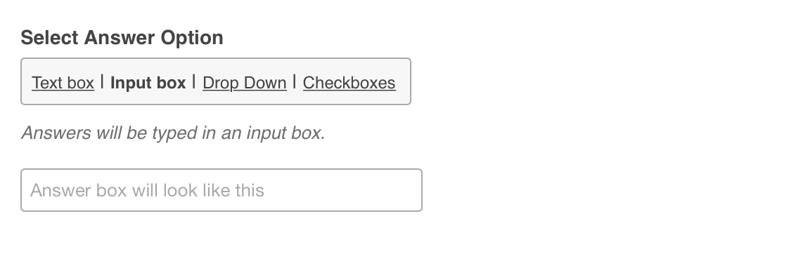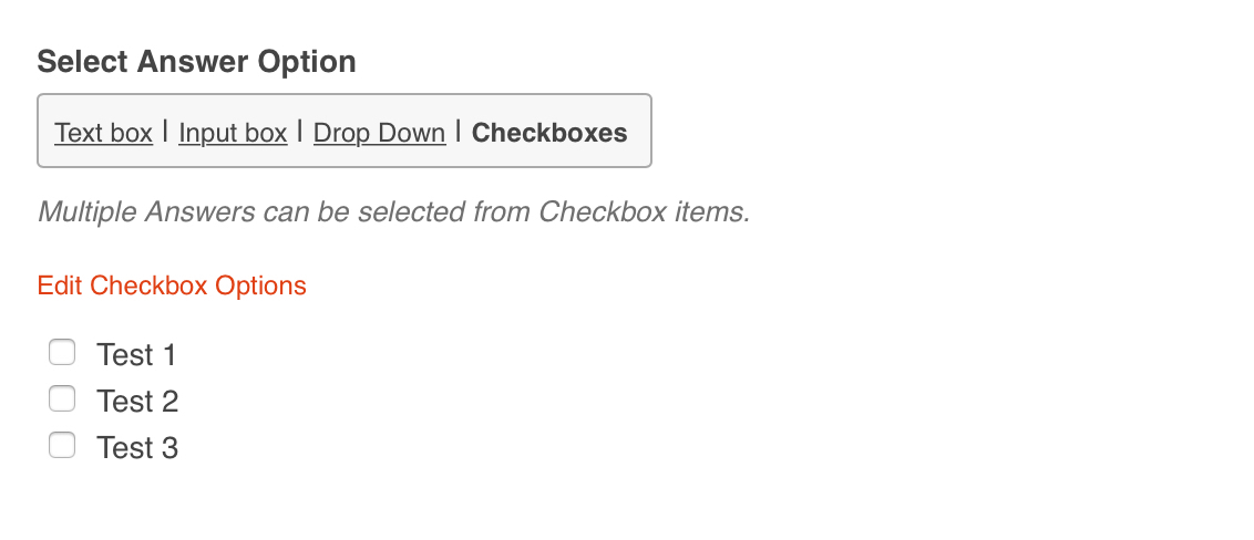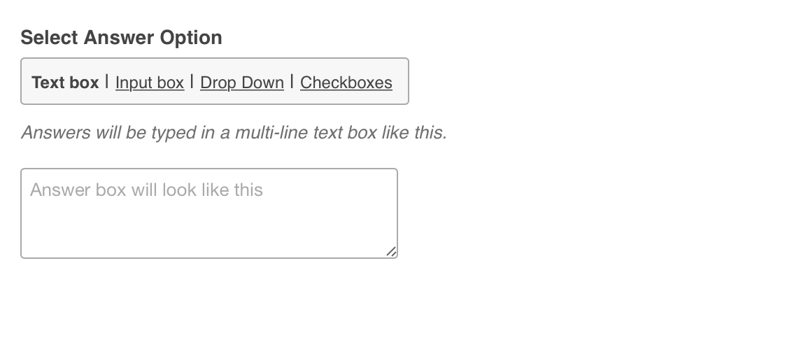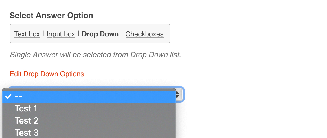 - Select Answer Option - Text Box, Input Box, Drop Down or Checkboxes