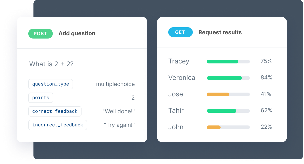 These pages tell you everything you need to know about integrating ClassMarker in your own learning platform, customizing your integration and managing your exam data. Our Quiz maker API Client and webhook example code are on GitHub.
