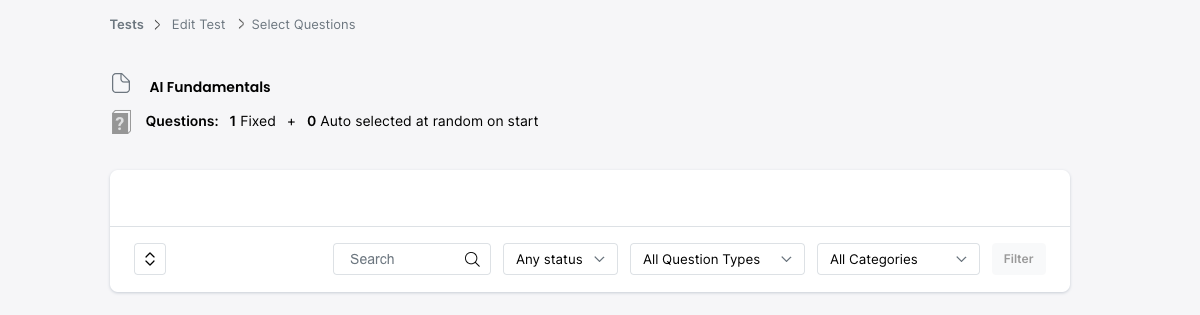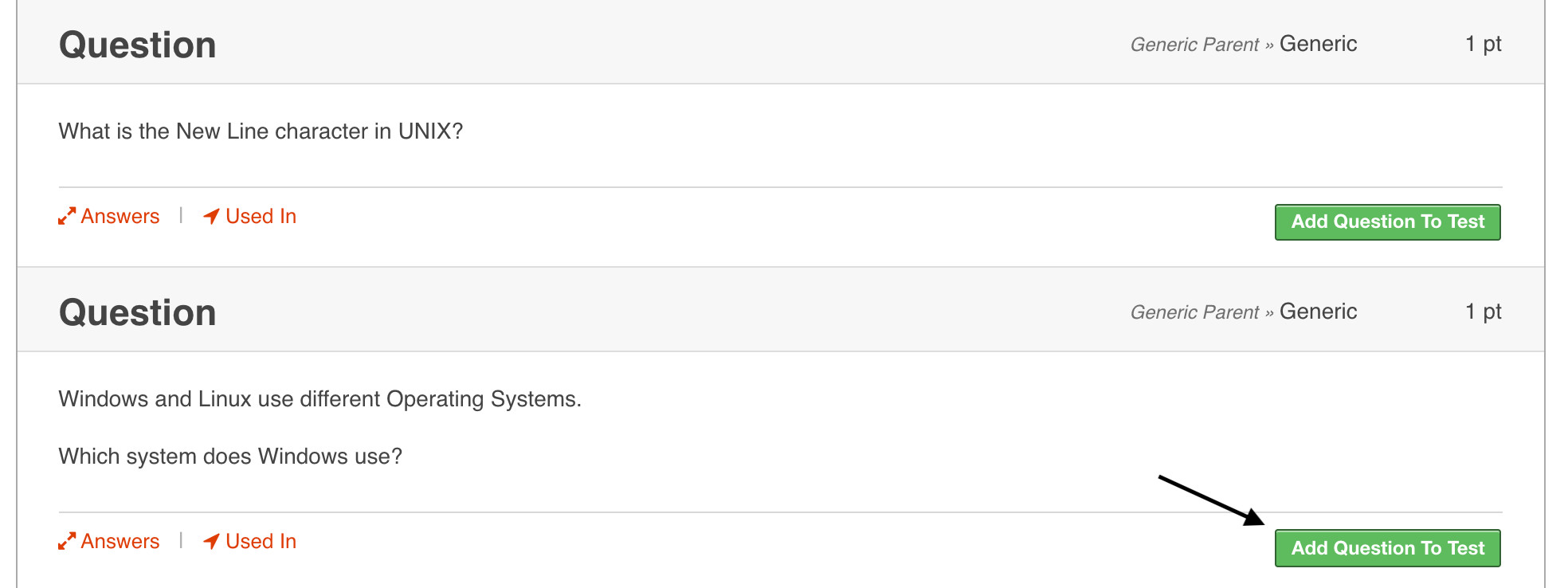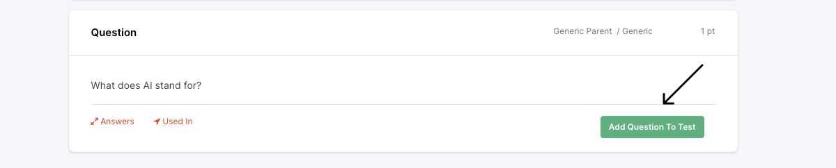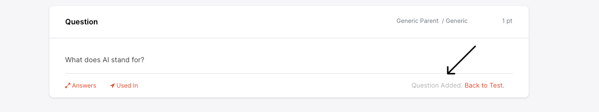 This means each Question that you add is saved into your Question Bank and can be reused across any number of Tests or surveys.