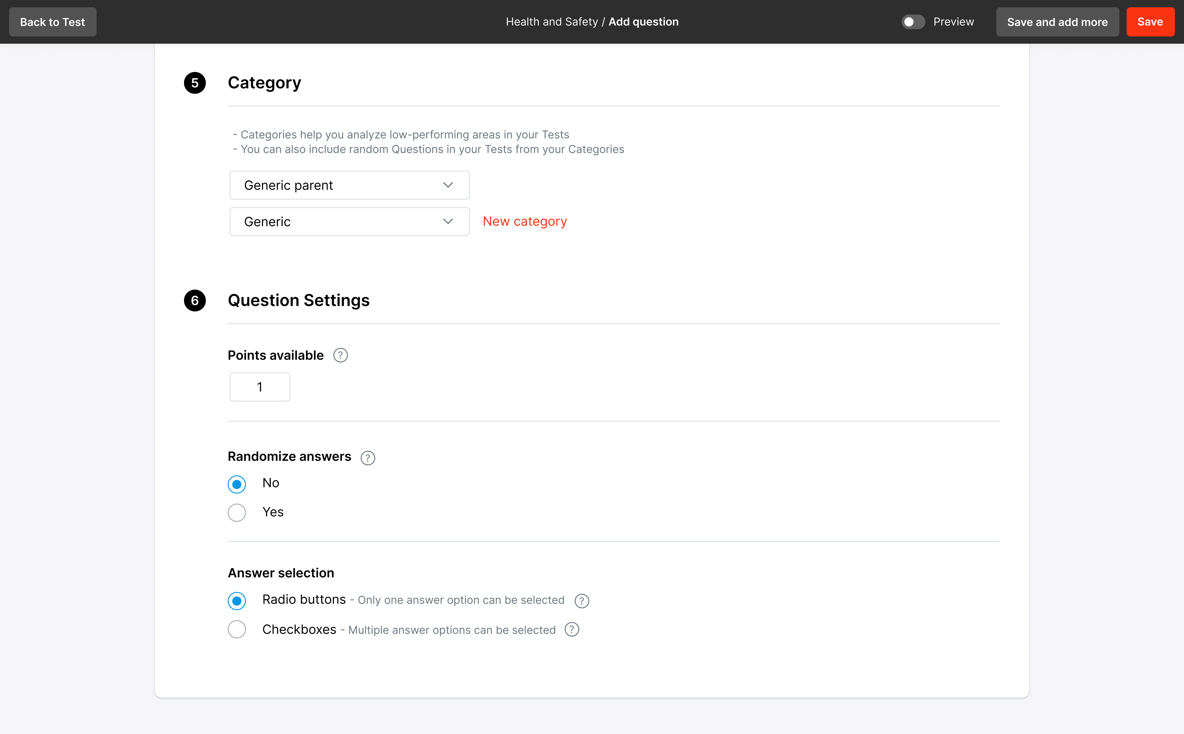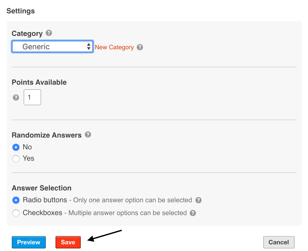 Choose whether you want your answer options to appear in randomized order. Finally, when you're happy with all your Question Settings, select 'Save'.