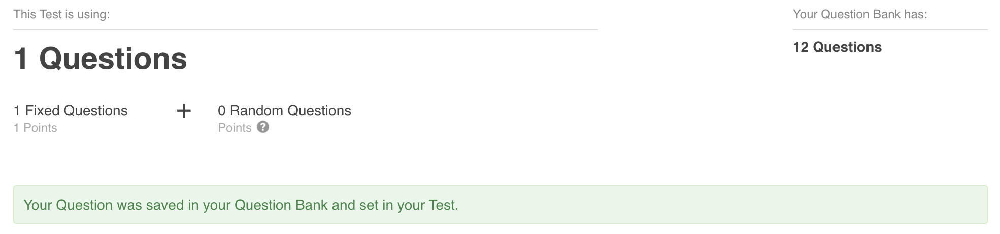 Congratulations! Your Question has been saved and is available to view on your Test or survey.
