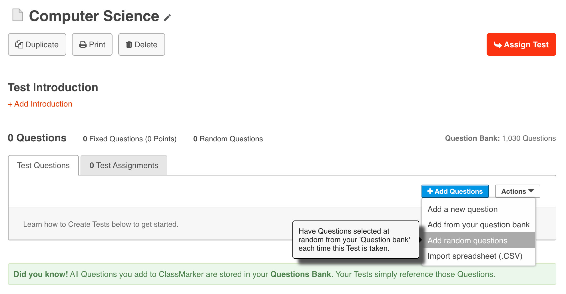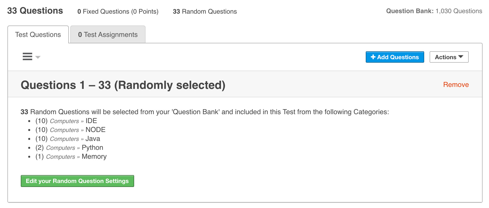 Congratulations! Your Test or survey now has Randomly selected Questions.