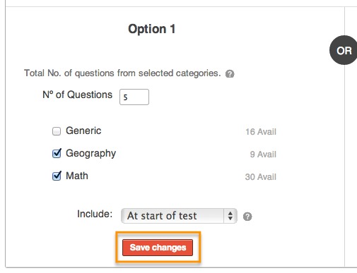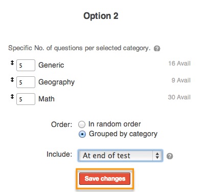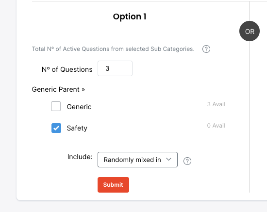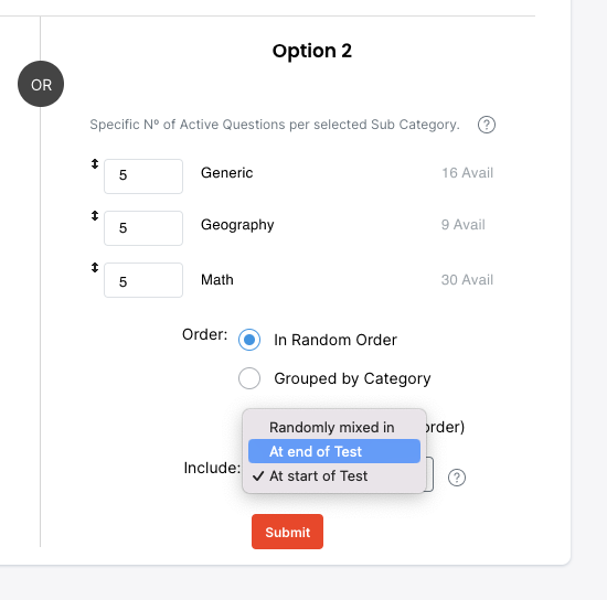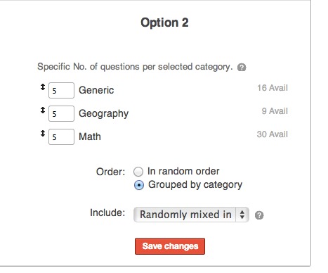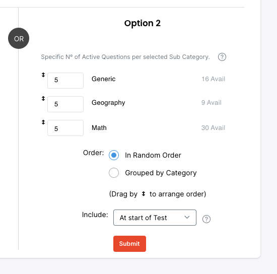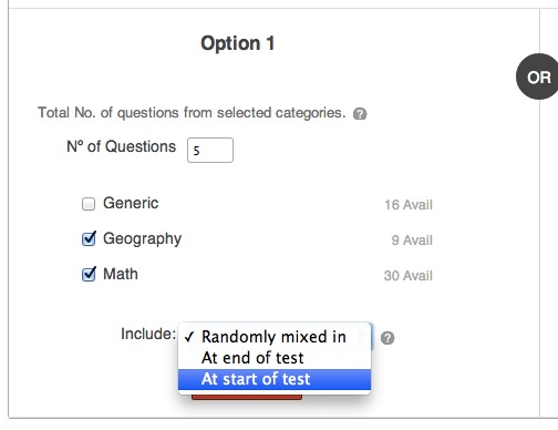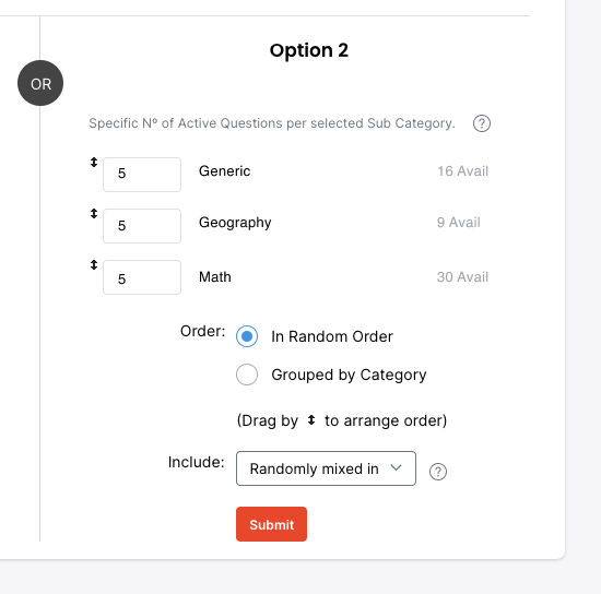 Option 2 allows you to select Categories and to define how many Questions per Category are to be Randomly selected.