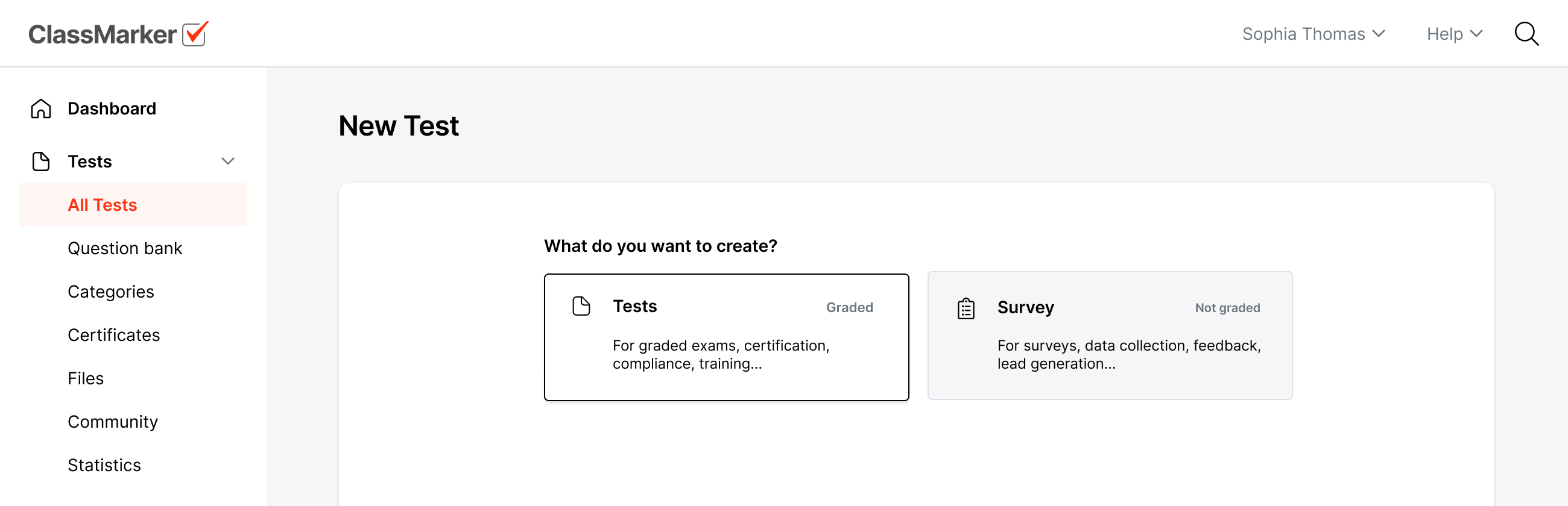 Go to the Tests section to Create a new Test or survey.
