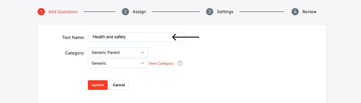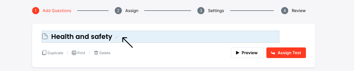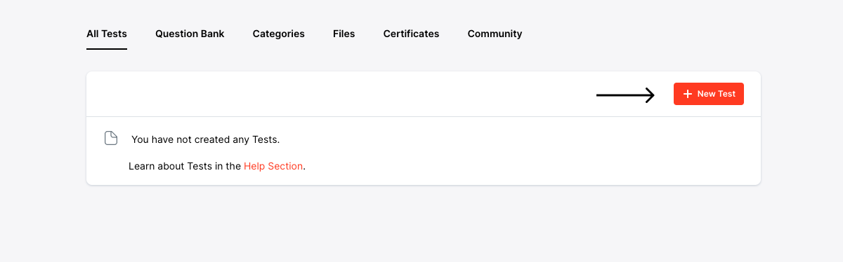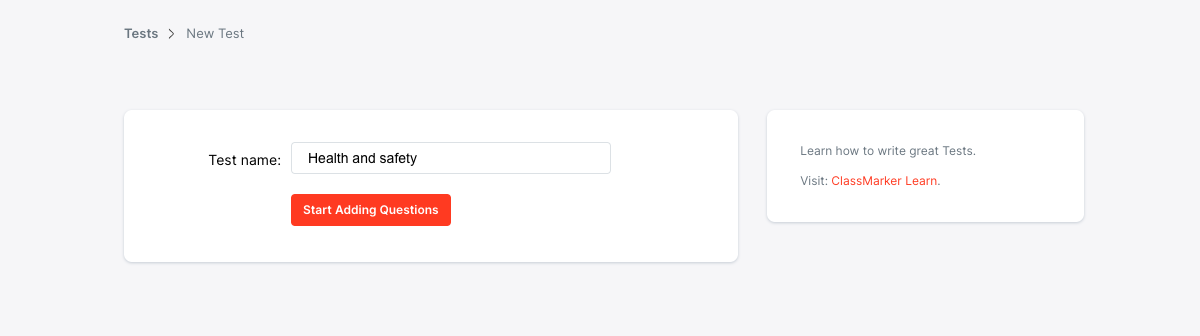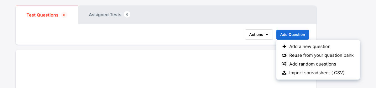 Congratulations! You have created your first Test. You can now start adding Questions.