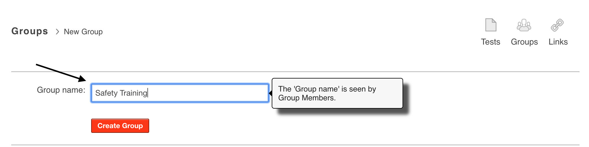 When you create a group, you can register members and assign tests or surveys for them to take.