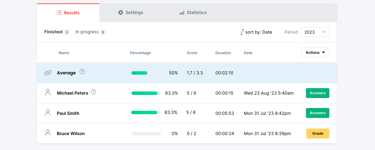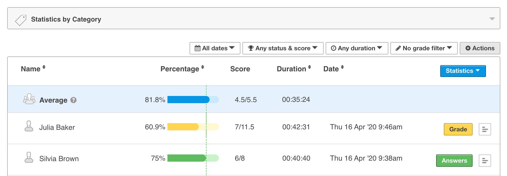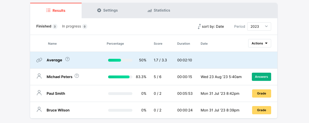 3. Your results are now available to view. To grade individual responses select 'Grade'.