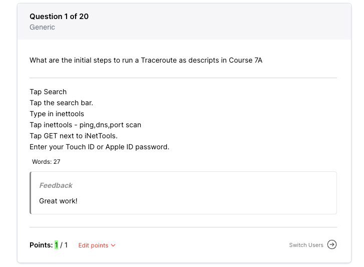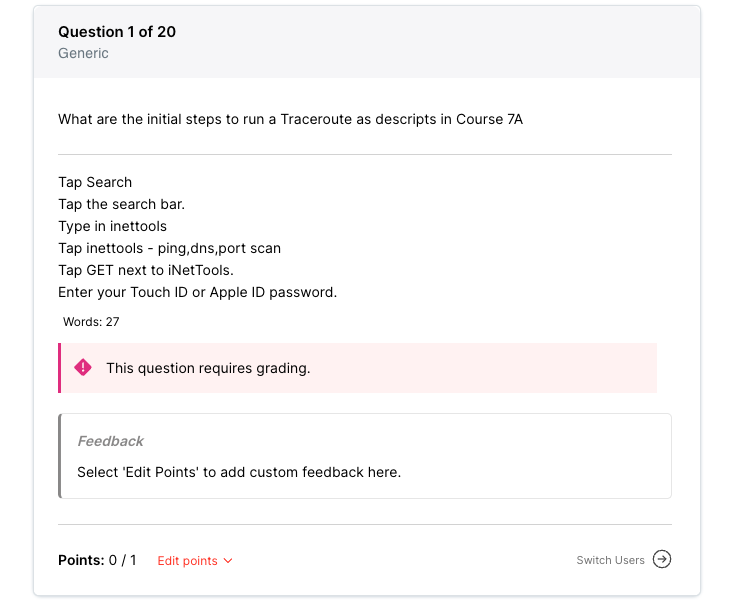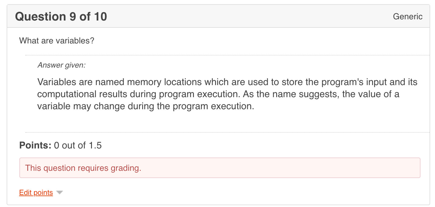 4. You can now view your Test taker's individual answers and edit their grades manually. Select 'Edit points'.