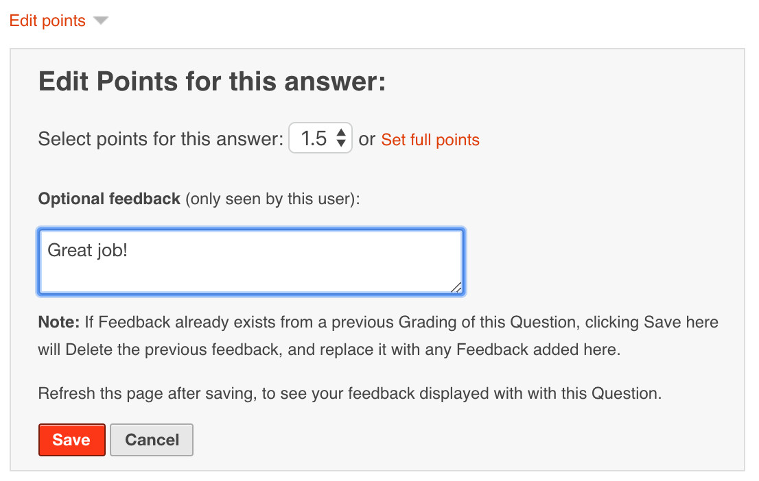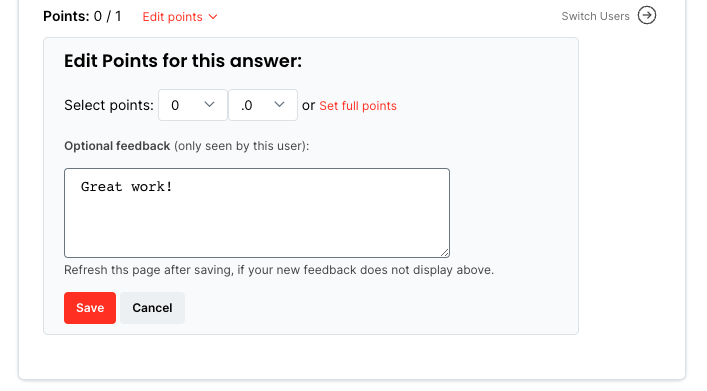5. Edit points and enter individual feedback that will only be seen by your user.