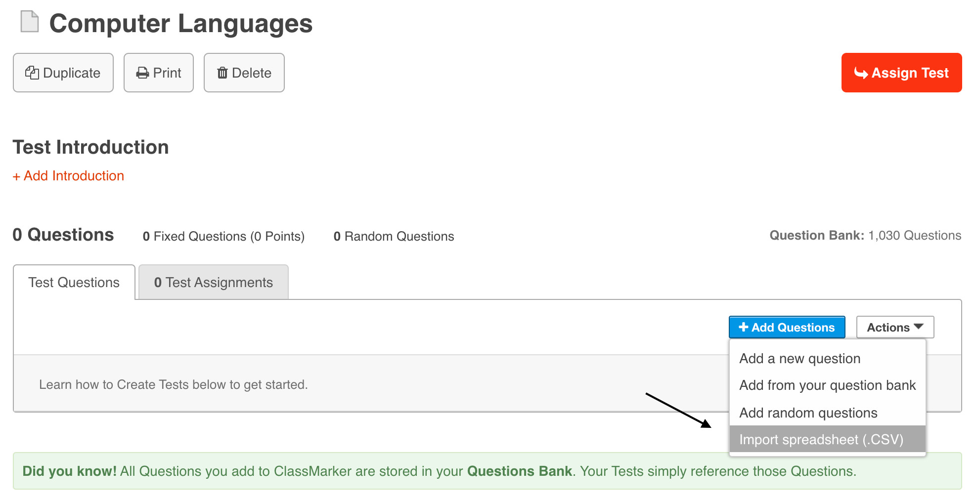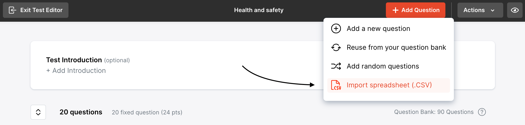 Importing Questions to your Test or survey: