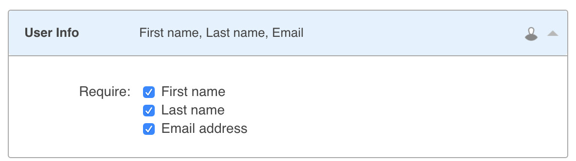 Define what user information is collected prior to starting. There are three pre-defined options that can be chosen: