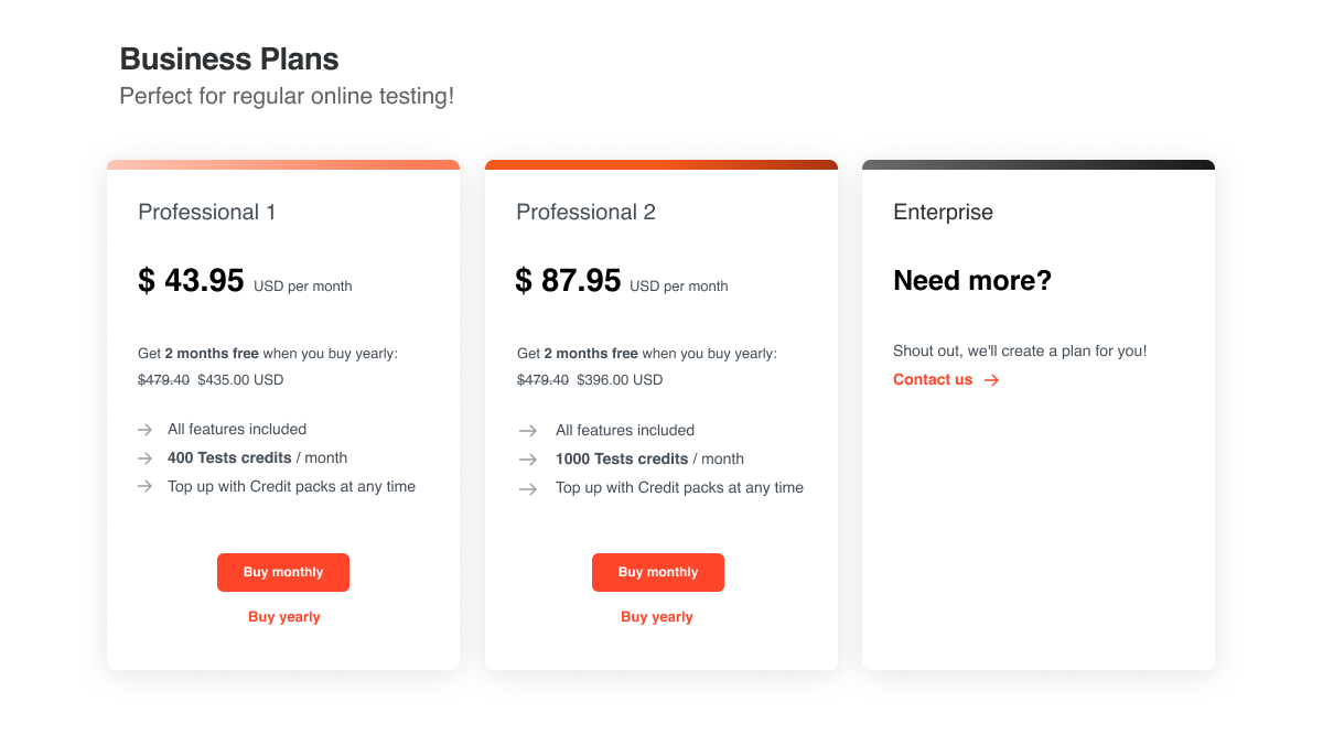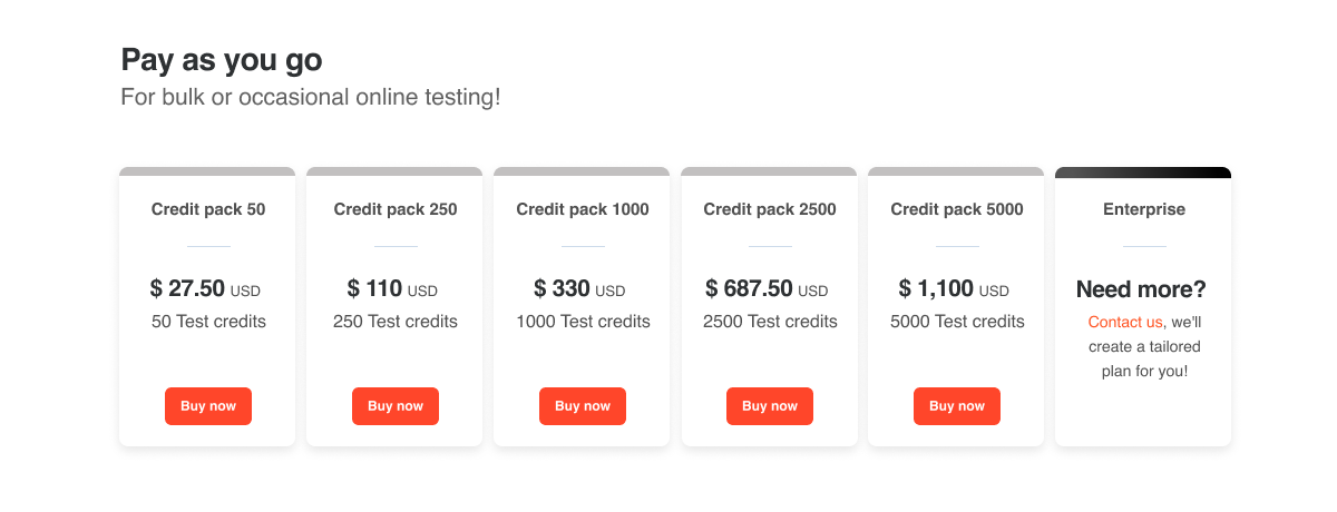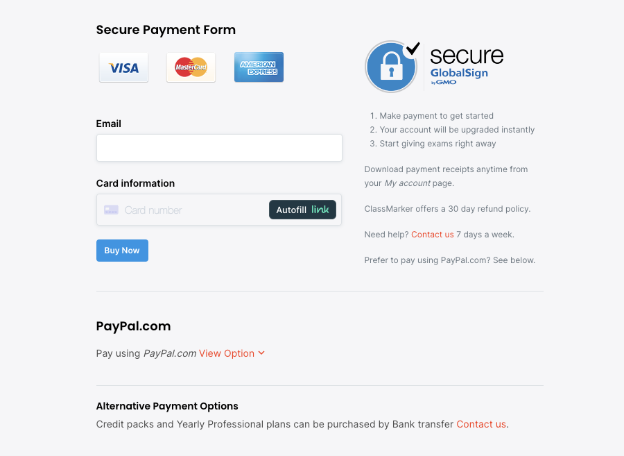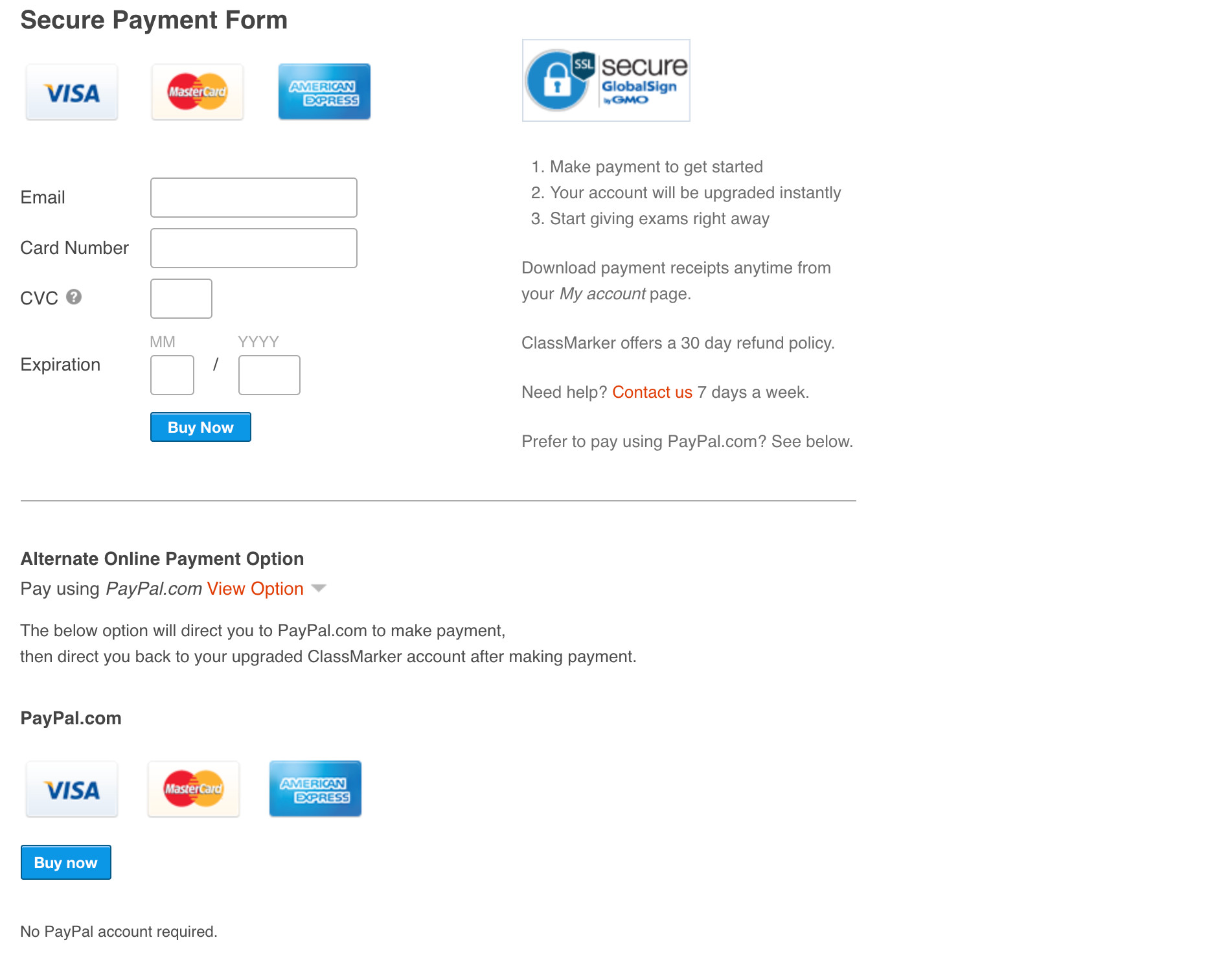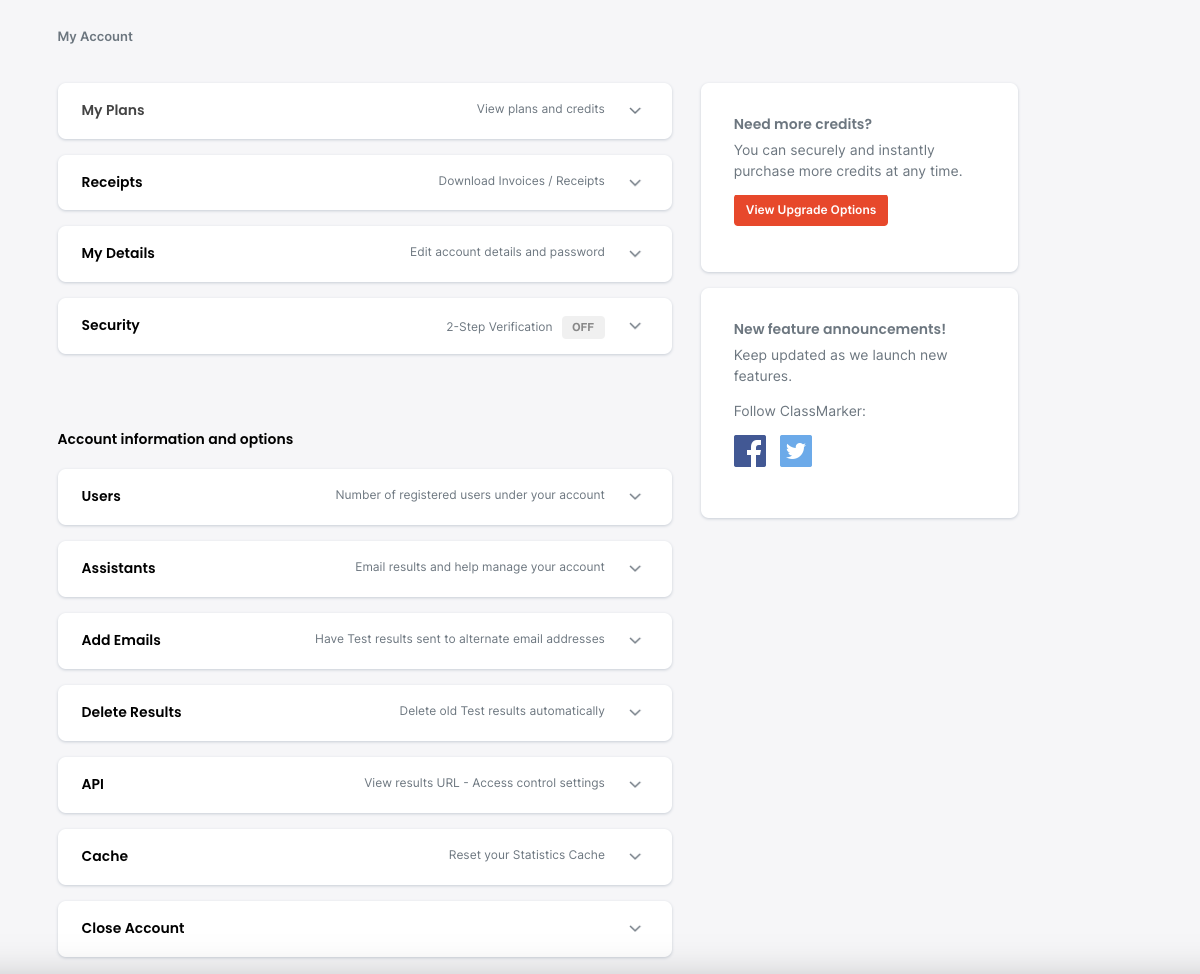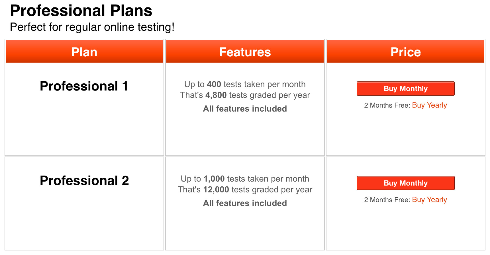 Ready to Upgrade your account? ClassMarker offers you a range of Professional Plan and Credit Pack options based on your Testing needs: