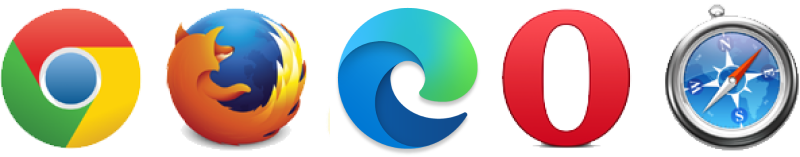 • Browsers: Edge, Firefox, Chrome, Safari, Opera