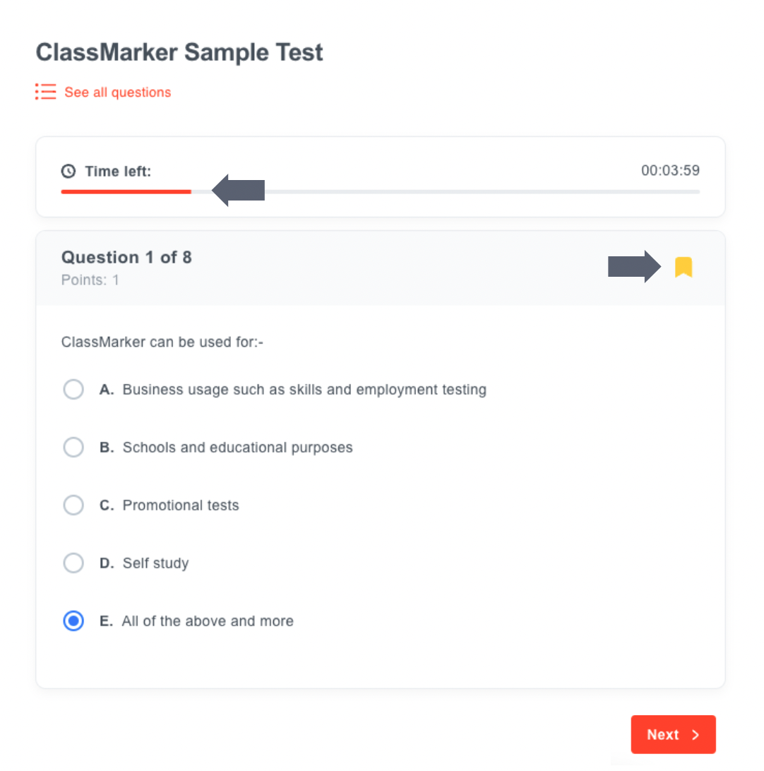Whether you need to create tests for pre-employment, job training, school or higher education, your test takers will find taking tests with ClassMarker easy.
