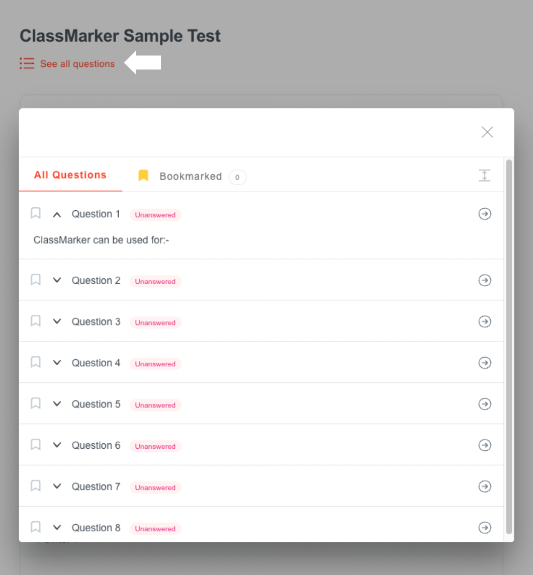 You can show your test users the full list of questions in that test or show questions one by one. Use the full list of questions feature when: